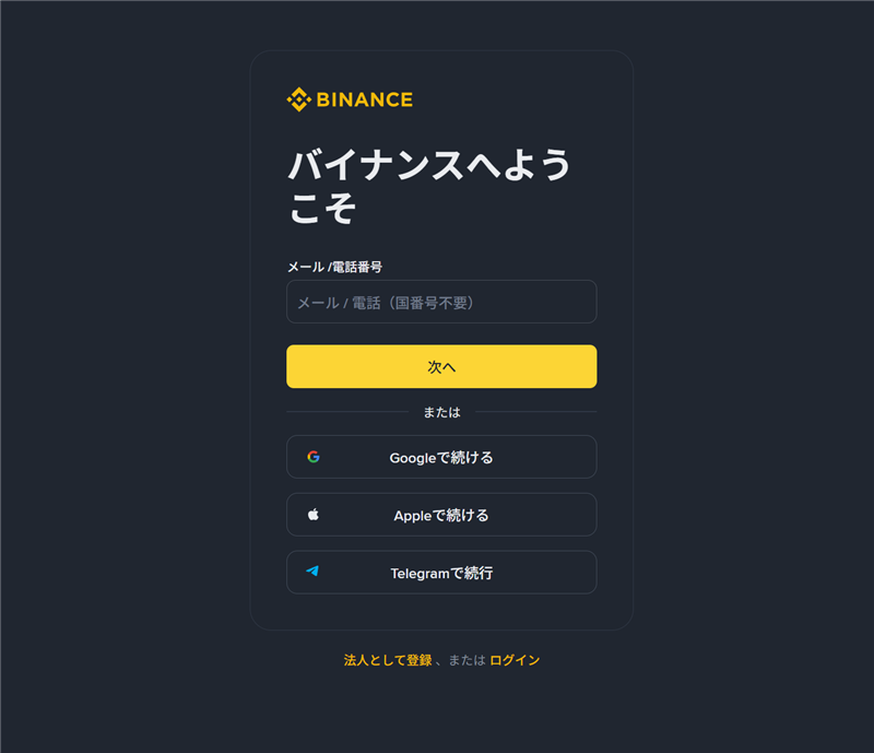 画像は本物の Binance のログイン画面を完全にコピーしていますが、これはユーザーを安心させてメールアドレス、電話番号、パスワードを盗み取るための罠です。 - 不審な通信元