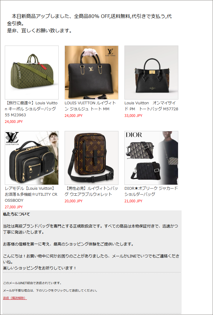 『詐欺メール』『秋冬シーズンに最適!人気ブランドの最新アイテム』と、来た件