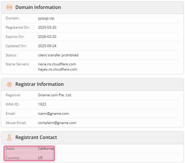 この情報が正しければ、このドメインの取得者はカリフォルニア州の方です。