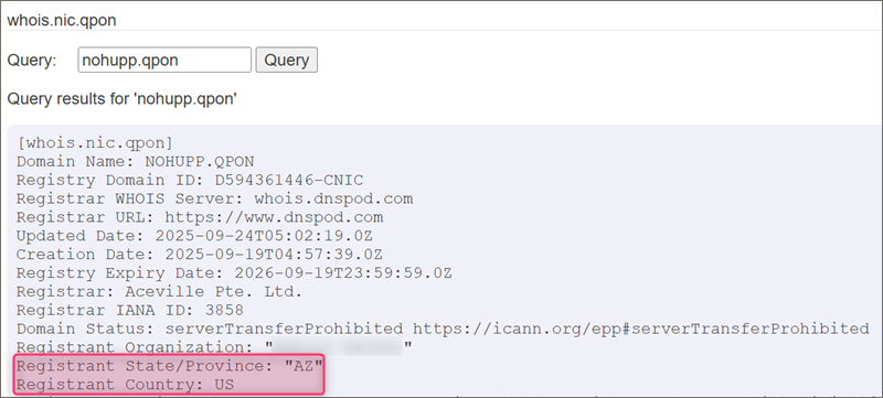 公式WHOISサーバー: whois.nic.qponでこのドメインに関する詳しい情報を取得してみます。