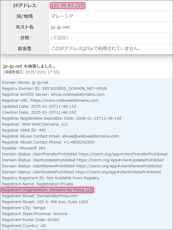 「Registrant Organization」には「Domains By Proxy, LLC」と記載されています。