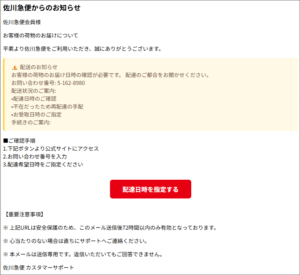 お荷物の配達をスムーズに行うため、至急ご確認いただきますようお願い申し上げます。