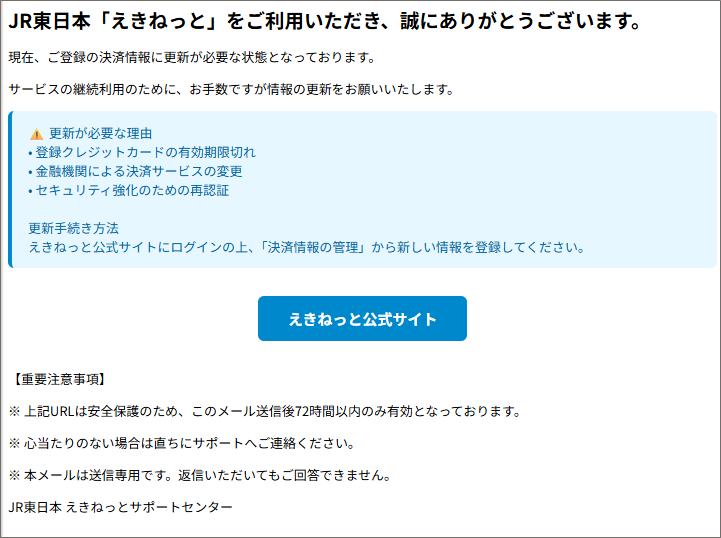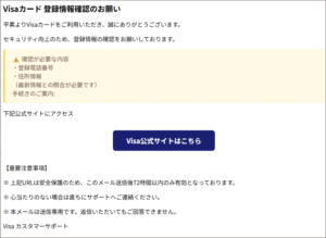 本来ならメールの本文を画像でお見せする方が分かりやすいかも知れませんが、全てを画像化してしまうとGoolgeなどのキーワード検索に反映されず、不審なメールを受取って不安で検索される方に繋がらない可能性が高くなります。