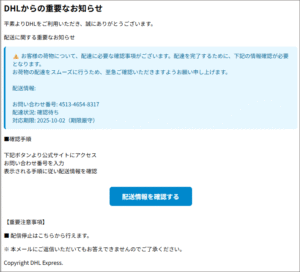『詐欺メール』日本DHLから『配送に関する重要なお知らせ』と、来た件