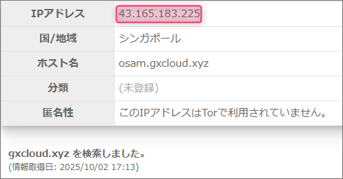 こちらが「Grupo」さんで取得したこのドメインに割当てているIPアドレスです。