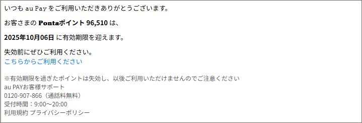 au が、ポイントの期限切れをその当日の前日に通知を送ってくるなんて非常識なことをするはずがありませんよね!