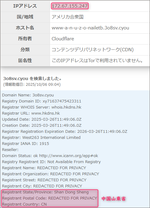この情報が正しければ、このドメインの取得者は中国山東省の方です。