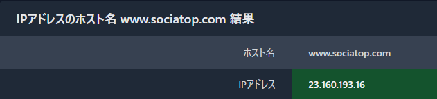 次にこのドメインを割当てているIPアドレスを「aWebAnalysis」さんで取得してみます。