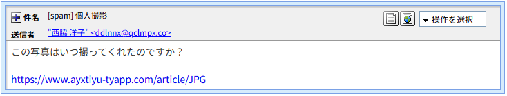 さてそんな中、今回注目するのは「個人撮影」と言うタイトルで送られてきたこれらのメールです。