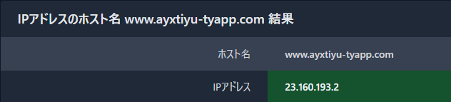 これによると、割当てているIPアドレスは「23.160.193.2」