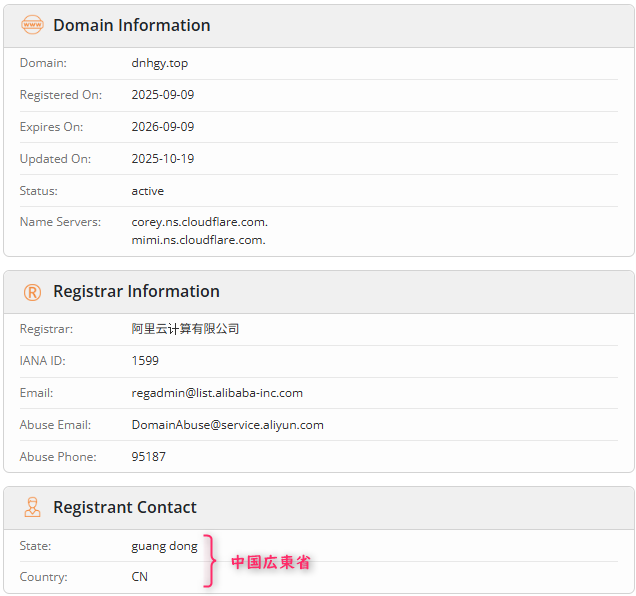この情報が正しければ、このドメインの取得者の所在地は中国広東省の方です。