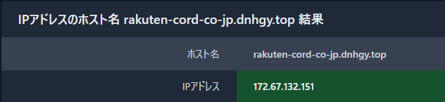 どうやらこのドメインも偽装されていたようで、IPアドレスに割り当てられていないドメインのようです。