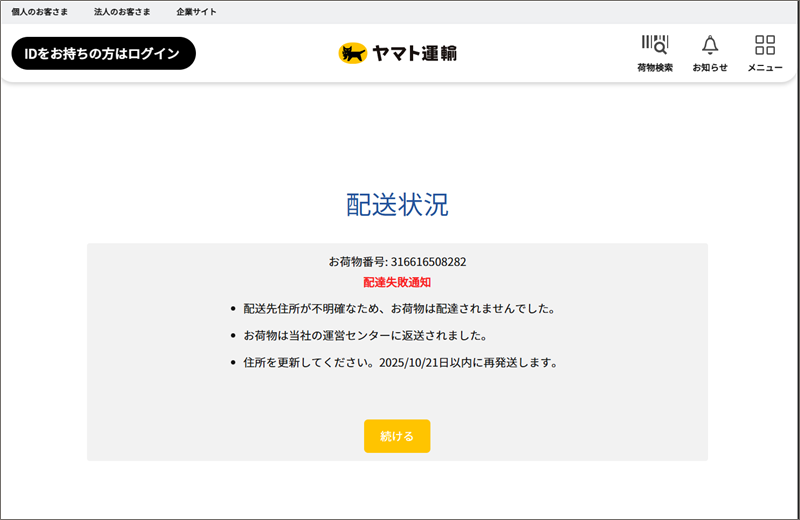• 下のボタンからヤマト運輸公式サイトにアクセス