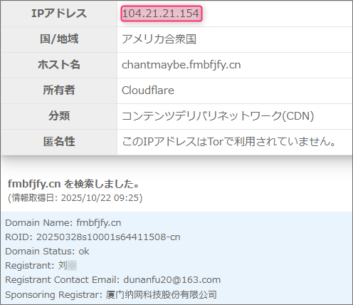 そうです、末尾が”.cn”は中国に与えられた国別ドメイン。