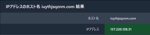 このドメインを割当てているIPアドレスを「aWebAnalysis」さんで取得してみます。