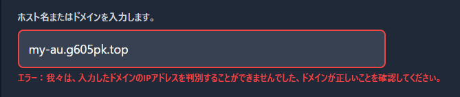 この結果から、どうやらこのドメインは現在どのIPアドレスの割り当てがされていないもので、利用することはできません。