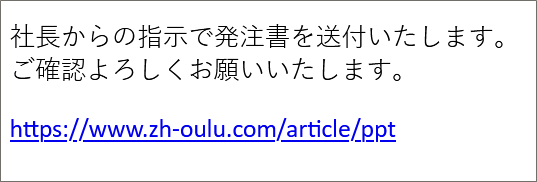 「社長の指示」や「発注書」など、業務上ありそうな言葉を使って信頼させようとするのが典型的な詐欺メールの手口です。