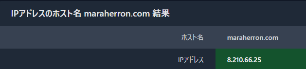 このドメインを割当てているIPアドレスを「aWebAnalysis」さんで取得してみます。