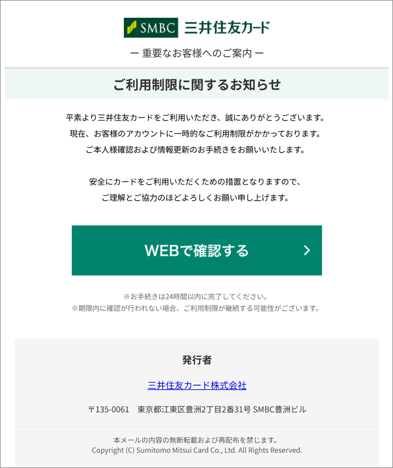 平素より三井住友カードをご利用いただき、誠にありがとうございます。