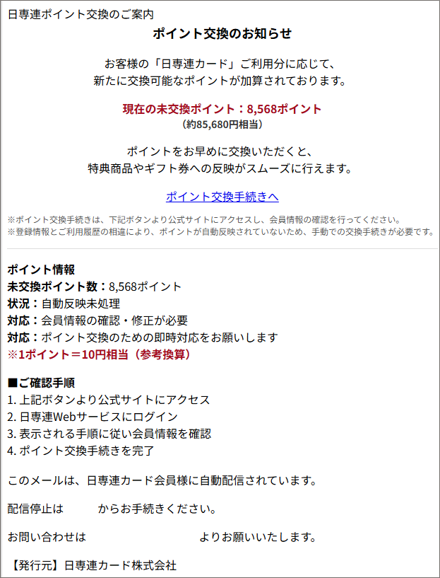 件名:[spam] 【重要】日専連カードポイント交換のご案内
