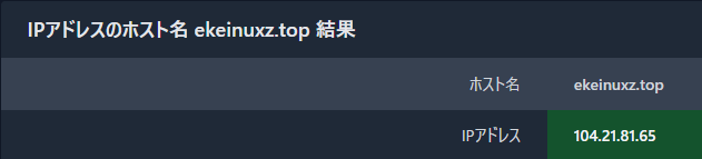 先程と同様にこのドメインを割当てているIPアドレスを「aWebAnalysis」さんで取得してみます。