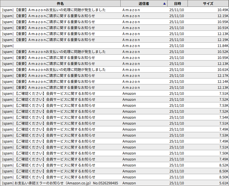昨夜も Amazon を騙る詐欺メールが大量発生!