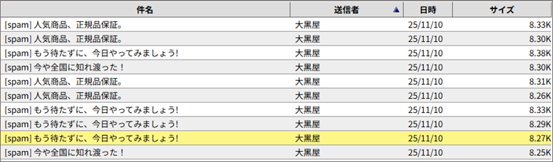 中身はどれもくだらないものなのでその解説は Amazon 詐欺メール専門紹介サイトにお任せするとして、今回は「大黑屋」とされる怪しい通販サイトからのメールのご紹介です。