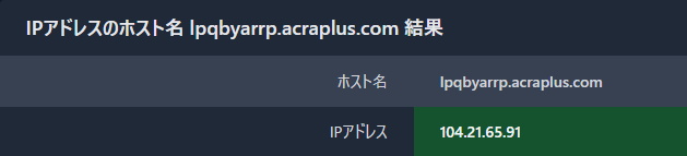 もう Amazon からのメールではないことは確定的ですが、一応試しにドメイン「mobile-bsport.com」を割当てているIPアドレスとカッコ内のIPアドレスを比較してみましょう。