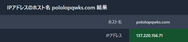 このドメインを割当てているIPアドレスを「aWebAnalysis」さんで取得してみます。