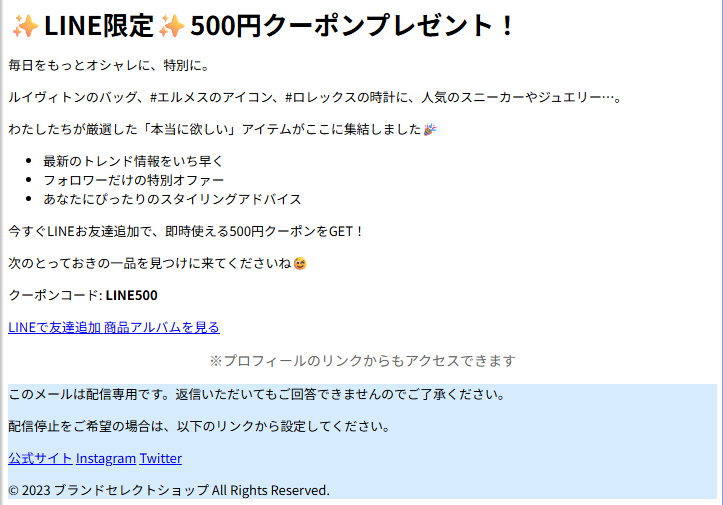 件名:[spam]✨LINE限定✨500円クーポンプレゼント!