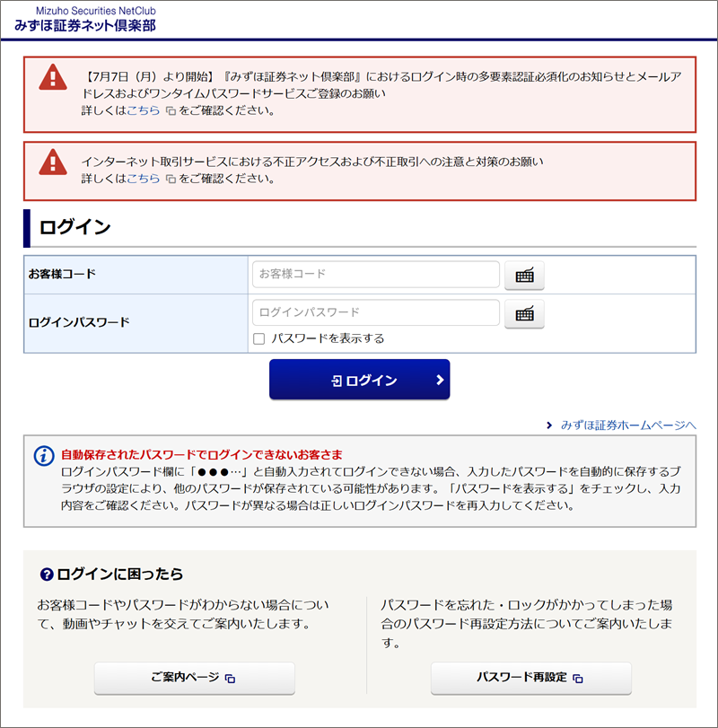 当社から、メールまたはお電話にてパスワードや暗証番号をお聞きすることは一切ございません。
