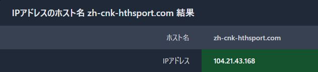 先程と同様にこのドメインを割当てているIPアドレスを「aWebAnalysis」さんで取得してみます。