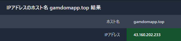 このドメインを割当てているIPアドレスを「aWebAnalysis」さんで取得してみます。