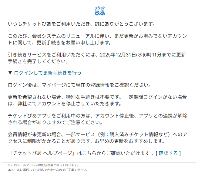 いつもチケットぴあをご利用いただき、誠にありがとうございます。