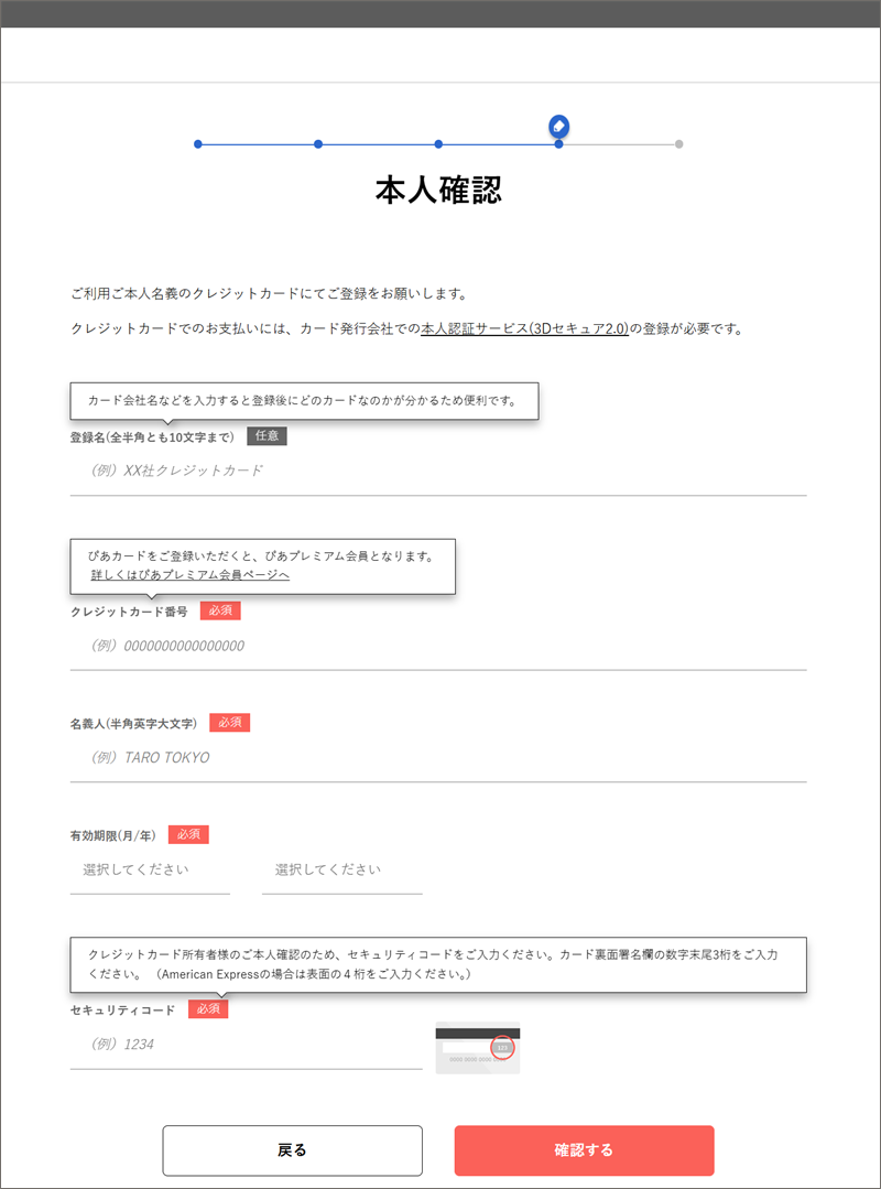 この先のページでこのように、「本人確認」と称し更にクレジットカードの情報を盗み取られた上で詐欺の被害に遭うことになります。