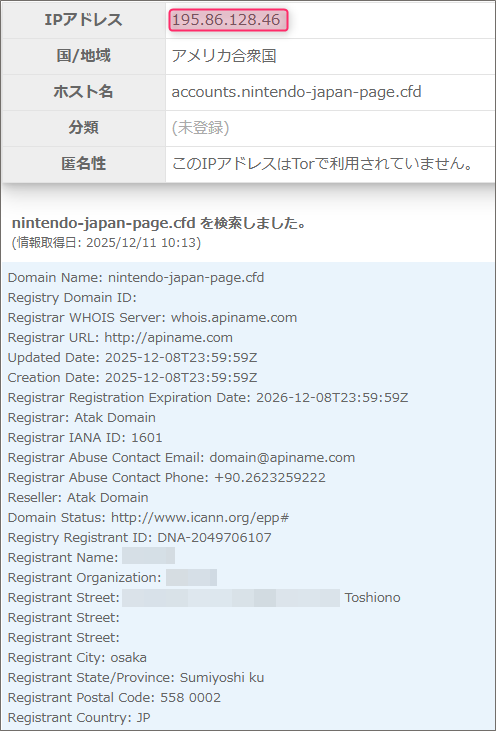 まあ、詐欺師がこのようなところに本当の個人情報を記載するとはおおよそ思えないので、これも偽装しているでしょう。