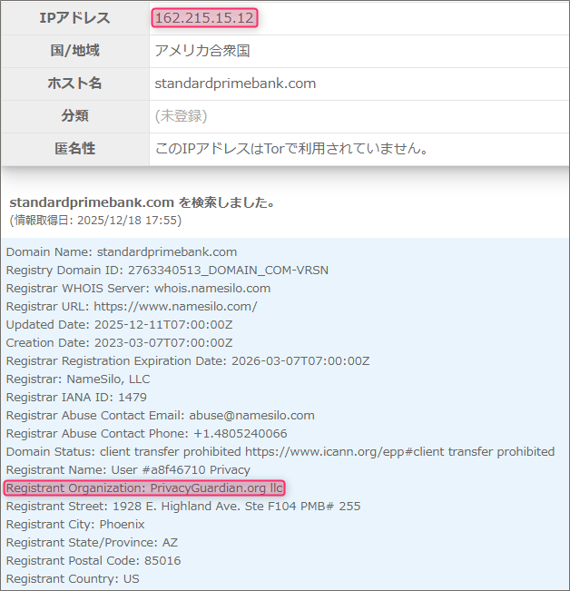 「Registrant Organization」には「PrivacyGuardian.org llc」と記載されています。