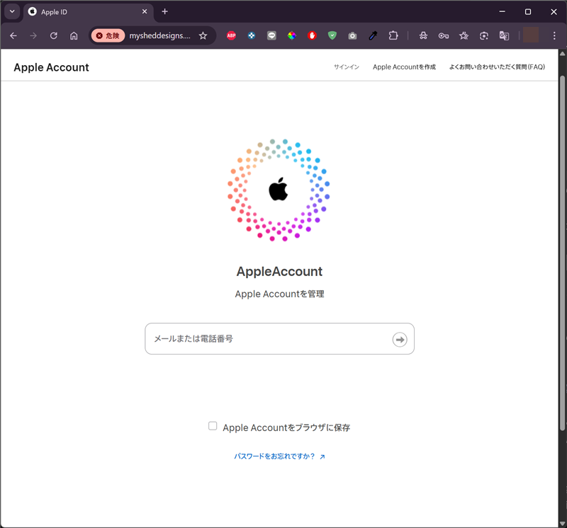 公式サイトとはURLが全く異なるので、これは本物そっくりの偽ログインページです。