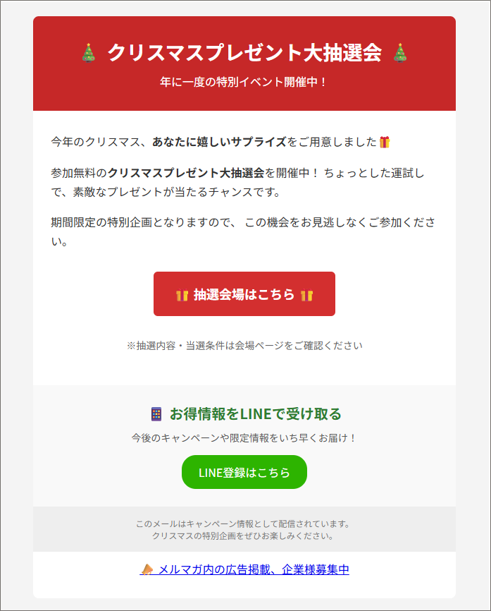 件名:[spam] 当たるかも クリスマス大抽選会 開催中