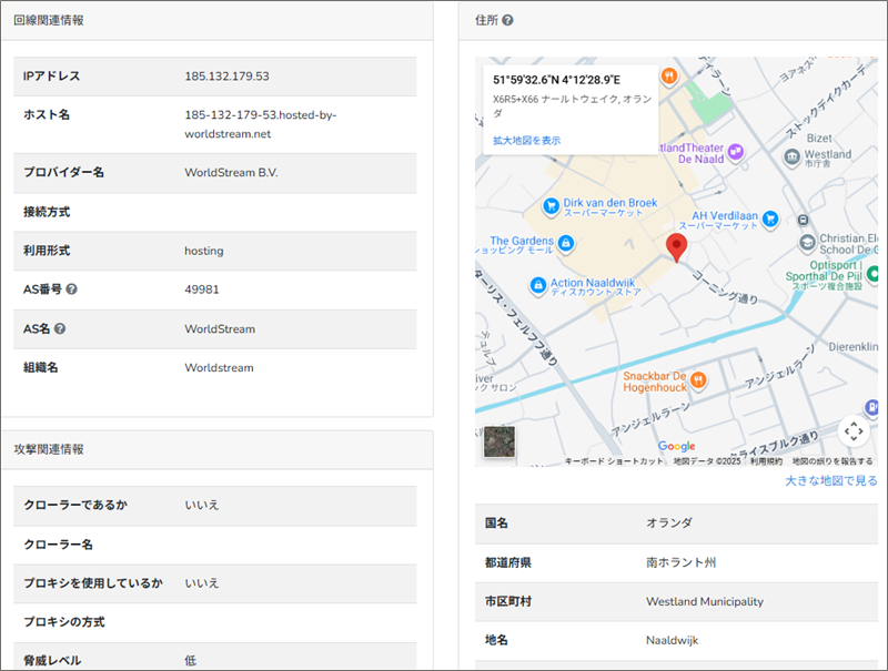 この IP は オランダのデータセンター運営会社 WorldStream B.V. の設備内にあるサーバーのものです。