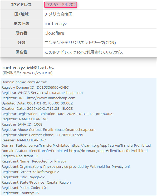 今回はいつもの怪しいメールとはちょっと指向の異なるメールで、海外ホスティング+WHOIS秘匿を利用した完全に「闇サイトの典型構成」 でした。