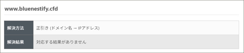 「対応する結果がありません」とあるので、このドメインはIPアドレスとの連携が切られているようでリンク先は無効になっています。
