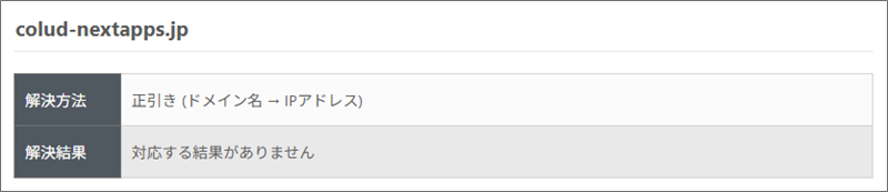 「対応する結果がありません」とあるのでIPアドレスとの紐づけが外れていますからリンク先は無効になっていることが分かります。