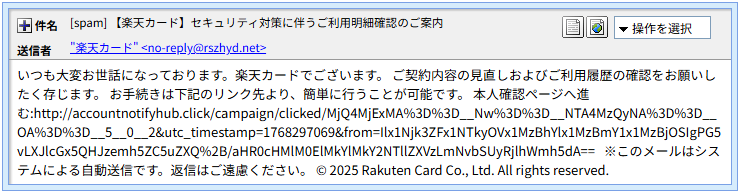 件名:[spam]【楽天カード】セキュリティ対策に伴うご利用明細確認のご案内