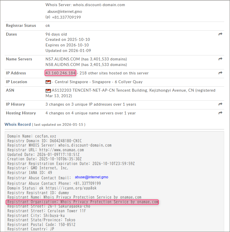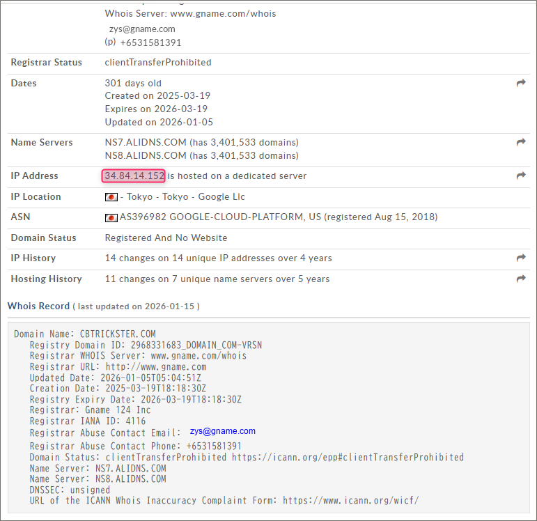先程と同様にこのドメインを割当てている詳しい情報を「whois.domaintools.com」さんで取得してみます。