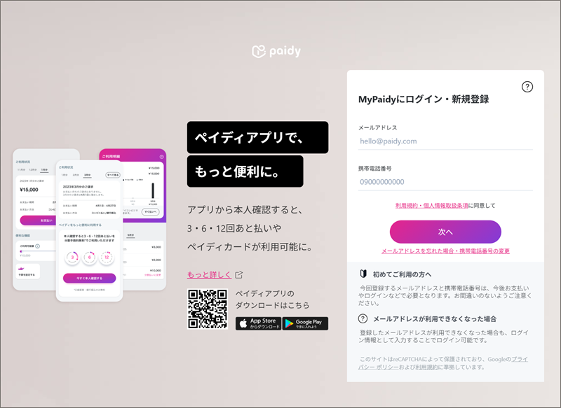 Paidy 公式サイトへアクセス