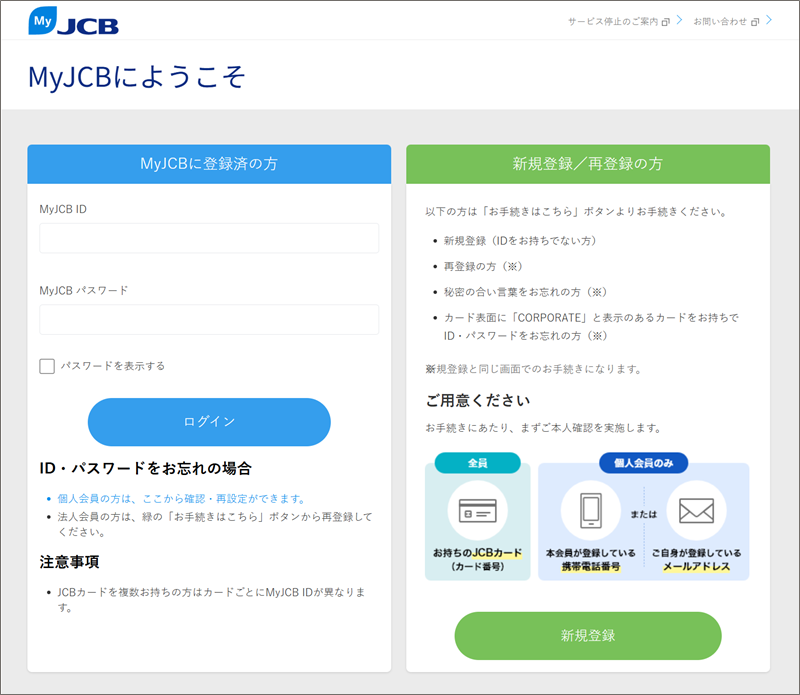 JCBカードをご利用のお客様
