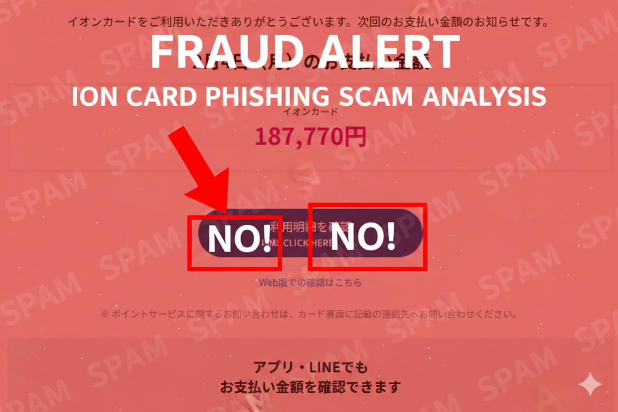 イオンカードの正規ドメインは @aeon.co.jp や @email.aeon.co.jp です。今回の送信元 @costcojapan.jp は全く別の企業の名前を騙っており、100%偽物と断定できます。