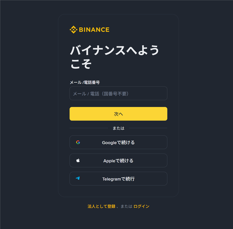 アクセスするとBinanceのログイン画面を精巧に模した偽ページが表示されます。
