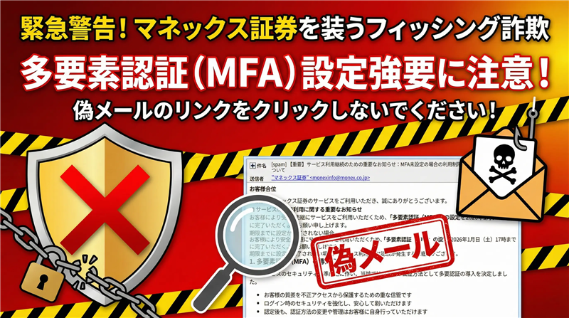 2026年に入り、金融機関を装った「多要素認証(MFA)」の導入を口実にしたフィッシング詐欺が爆発的に増加しています。法改正やセキュリティ強化のニュースに便乗し、ユーザーに「今すぐ対応しなければならない」と錯覚させる手口が共通しています。